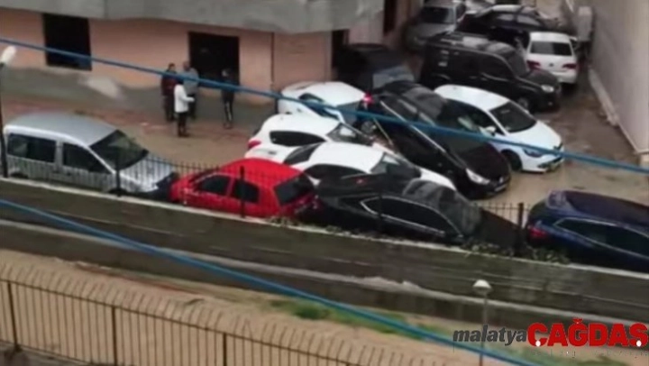 Merkez Mezitli ilçesinde Onur Sitesi önündeki araçlar sel sularında sürüklendi, Akdeniz ilçesindeki Deliçay taştı.