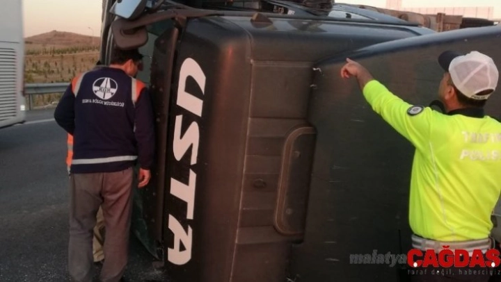 Alınan bilgiye göre, K.G.'nin kullandığı 33 NAM 72 plakalı yem yüklü tır, TEM otoyolu Tarsus Doğu Gişeleri'ne yakın noktada sürücünün direksiyon hakimiyetini kaybetmesi sonucu devrildi. Kazada araç sürücüsü K.G. ve yanında yolcu olarak bulunan A.S. hafif şekilde yaralandı. Olay yerine trafik, 112 Acil Sağlık ve İtfaiye ekipleri sevk edildi.