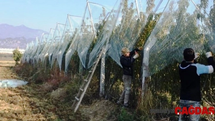 Meyve bahçesini file ile kapattı