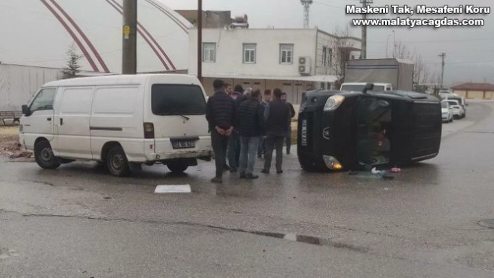 Adıyaman'da, minibüs ile çarpıştıktan sonra devrilen hafif ticari araç sürücüsü yaralandı.
