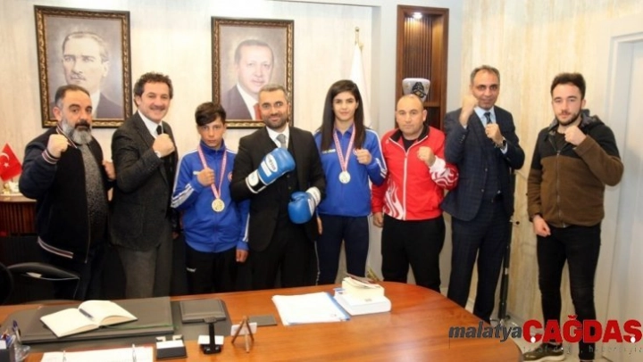 Türkiye'yi temsilen Avrupa şampiyonlarına katılarak derece elde eden milli boksörlerden Evin Erginoğuz ve Ahmet Pekel, Van'ın Edremit Belediye Başkanı İsmail Say'a teşekkür ziyaretinde bulundular.