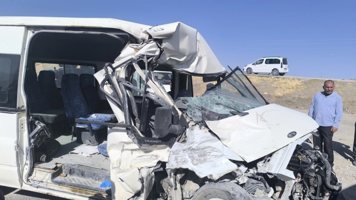 Van'da minibüs ile kamyonun çarpıştığı kazada 1 kişi yaralandı.