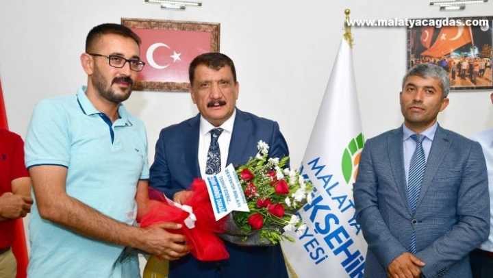 Malatya Minibüsçüler ve Umum Servis Araçları Esnaf Odası Başkanı Mesut İnce, beraberinde oda yönetimi ve şoför esnafları Başkan Gürkan'a teşekkür ziyaretinde bulundular.