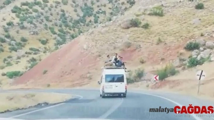 Minibüsün üstünde tehlikeli yolculuk
