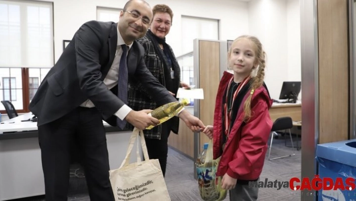 Büyükçekmece'de 9 yaşındaki çevre dostu Sera Saltık, topladığı 5 litre atık yağı Büyükçekmece Belediyesi Çevre Koruma ve Kontrol Müdürlüğü ekiplerine teslim ederek örnek bir davranışa imza attı.