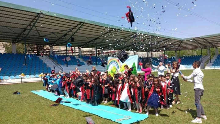 Malatya'nın Darende ilçesinde minik öğrenciler kep atarak mezun oldu.