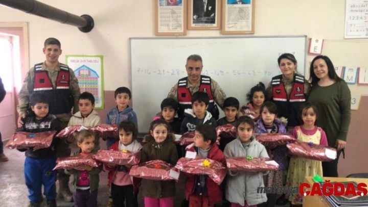 Minik öğrenciler jandarmanın bu ziyareti ve hediyesine teşekkür ettiler.