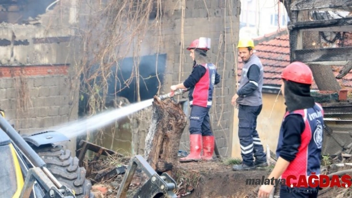 Mobilya atölyesindeki yangını soğutma çalışmaları sürüyor