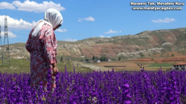 Sivas'ta tarlalarda kendiliğinden açan mor çiçekler seyrine doyumsuz bir manzara oluşturdu. Gören fotoğraf çektirmek için mor tarlalara akın etti.
