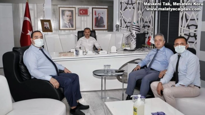 Tapu ve Kadastro 21. Bölge Müdürü Hamdi Erşen, beraberinde Adıyaman Kadastro Müdürü Hüseyin Onur Sarıkaya ve Tapu Müdürü Esat Denli ile birlikte Adıyaman Belediye Başkanı Süleyman Kılınç'ı makamında ziyaret etti.