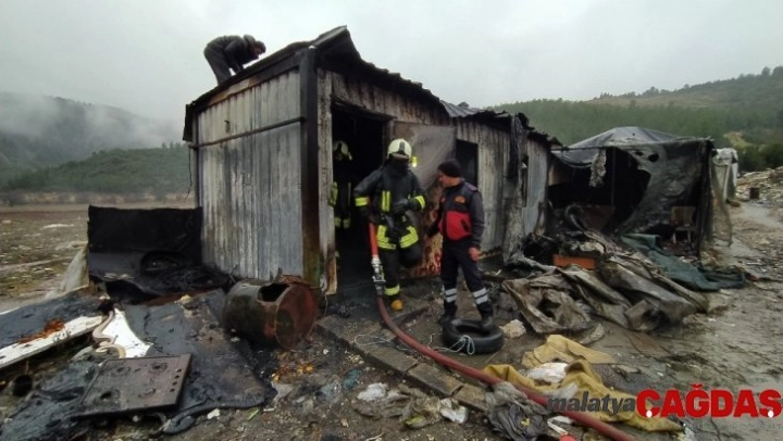 Burdur'un Bucak ilçesindeki çöp toplama merkezinde çıkan yangında 3 mültecinin yaşadığı konteyner küle döndü.