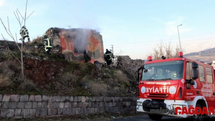 Kayseri'nin Melikgazi ilçesinde kullanılmayan tek katlı müstakil evde çıkan yangını itfaiye ekipleri söndürdü.
