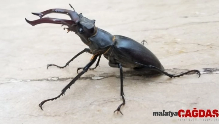 Türkiye'de koruma altında bulunan ve yaşam alanlarının genişletilmesi için çalımalar yürütülen bilimsel adı "Lucanus cervus" olan "Geyik Böceği" Elazığ'da görüntülendi.