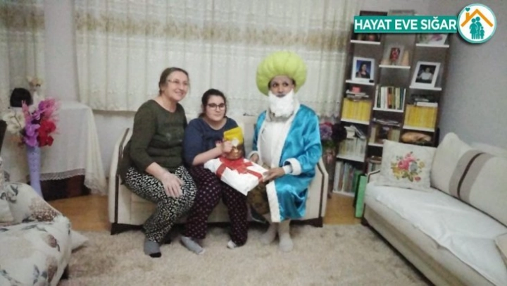Malatya'da engelliler Nasrettin Hoca kıyafetiyle, korona virüs önlemleri mesafe kuralları riayet edilip ziyaret gerçekleştirilerek sevindirildi ve hediyeler verildi
