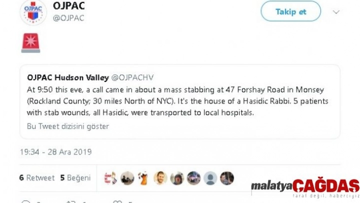 ABD'nin New York kentinde bir hahamın evine Hanuka kutlamaları sırasında düzenlenen saldırıda 5 kişi yaralandı.