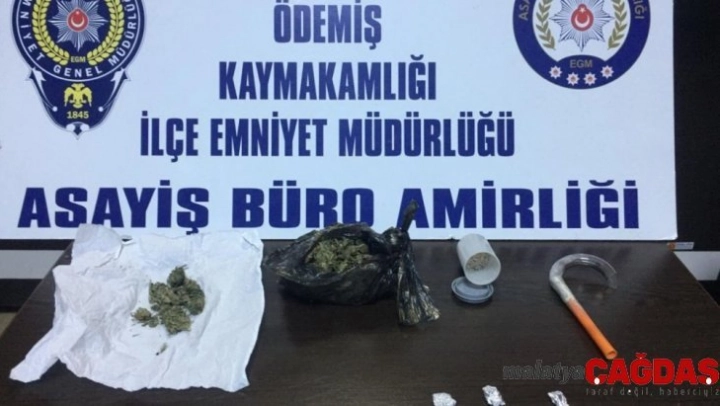 Ödemiş İlçe Emniyet Müdürlüğü, uyuşturucu madde ticareti yapan ve uyuşturucu madde kullanan şahıslarla mücadeleye yönelik olarak yapılan çalışmalar kapsamında H.Ş. isimli bir şahsın ikametinde uyuşturucu madde satışı yaptığı yönünde istihbarat aldı. Operasyonda, ikamette ve ikamette bulunan H.Ş. ile E.O. isimli şüpheli şahısların üzerinde aramalar yapıldı. Aramalarda uyuşturucu maddeler ve uyuşturucu madde içiminde kullanılan düzenekler ele geçirildi. Şahısların haklarında işlem yapıldı.