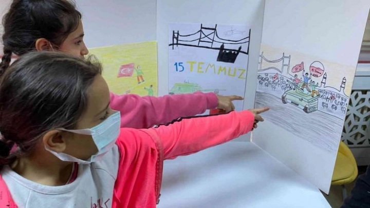 Adıyaman Mehmet Akif Ersoy Ortaokulunda açılan 15 Temmuz resim sergisi büyük ilgi gördü.