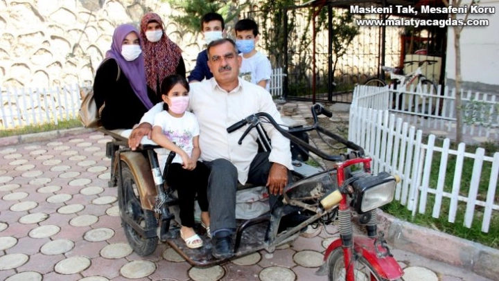 Adıyaman'da okuma yazma bilmeyen engelli Hanifi Yaman'ın her gün engelli aracıyla okula götürüp getirdiği 3 çocuğu hafız oldu.