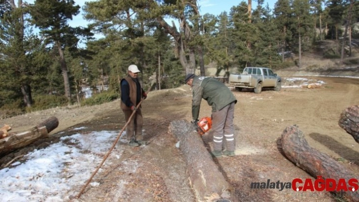 Orman Muhafaza Memuru Seçkin Kartal, 'Kış şartlarında kesim yapılıyor; arkadaşlar çalışıyorlar bizler de takibini yapıyoruz. Yapılan tomruk üretimi ise kamyonlarla Elazığ'a gönderiyorlar' dedi.