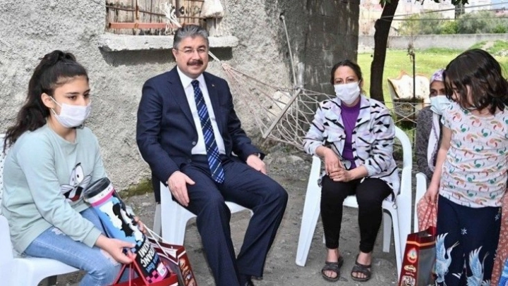 Osmaniye Valisi Erdinç Yılmaz, geleneksel hale getirdiği ev ziyaretlerini sürdürüyor. Bu hafta da 3 çocuklu bir aileye misafir olan Yılmaz, ailenin sorun ve isteklerini dinledi. Sosyal Yardımlaşma ve Dayanışma Vakfı Müdürü Aykut Bulut'unda eşlik ettiği aile ziyaretlerinde çocuklarla da yakından ilgilenen Vali Yılmaz, çocuklara çeşitli hediyeler vermeyi de ihmal etmedi.