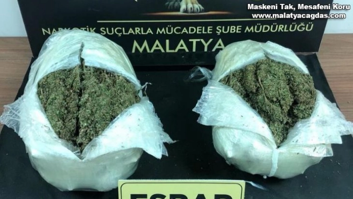 Malatya'da polis ekiplerince durdurulan bir otobüsteki yolcunun eşyaları arasında 3 kilo 100 gram esrar maddesi ele geçirildi. Olayda gözaltına alınan şüpheli tutuklandı.