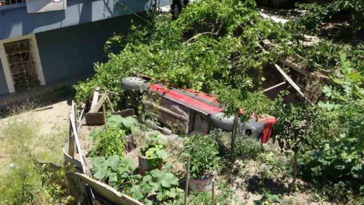 Otomobil bahçeye uçtu, anne ve 2 çocuğu yaralandı