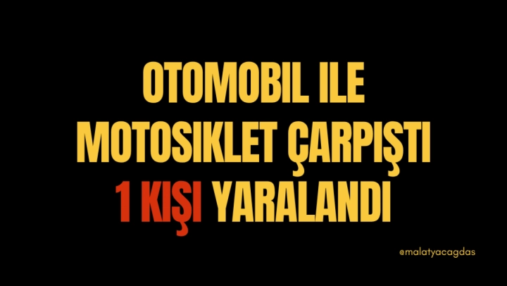Yeşilyurt ilçesinde Kudüs Caddesi üzerinde meydana gelen trafik kazasında otomobil ile motosiklet çarpıştı. Motosiklet sürücüsü E.D., hayati tehlikesi bulunmayacak şekilde yaralandı.