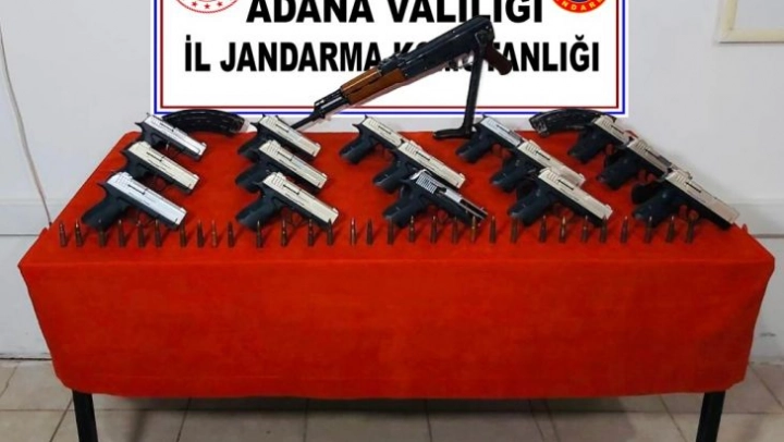 Adana İl Jandarma Komutanlığı ekiplerince, merkez Sarıçam ilçesi, Kılıçlı Mahallesi'nde yapılan yol araması esnasında M.A.K. ve T.K. isimli şahısların içerisinde bulunduğu otomobilde adli makamlardan alınan karara istinaden arama yapıldı. Aramada 1 adet Kalaşnikof marka piyade tüfeği, bu tüfeğe ait 2 adet şarjör, 33 adet fişek, 15 adet ruhsatsız tabanca, 15 adet tabanca şarjörü ele geçirildi.