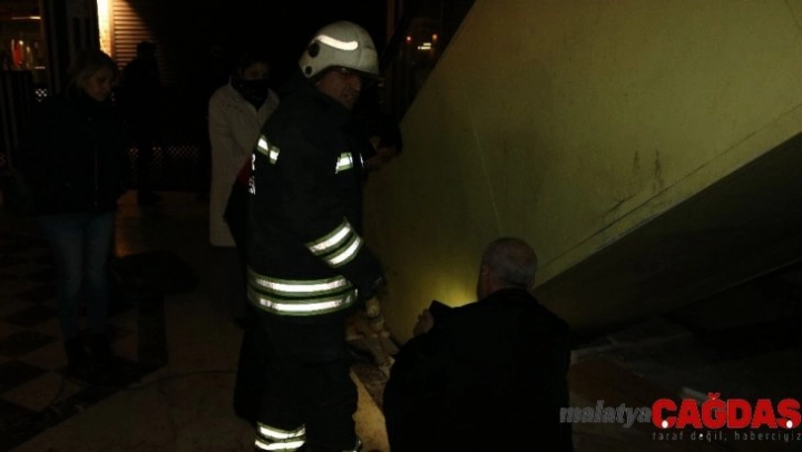 (Özel) 3 gün yürüyen merdiven altında mahsur kalan felçli kediyi itfaiye erleri kurtardı