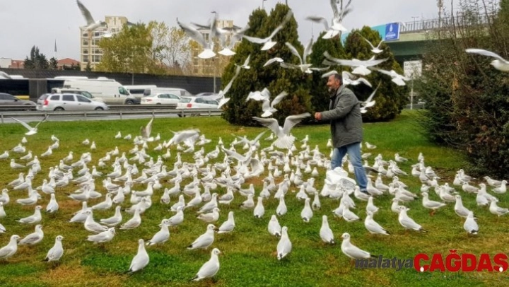 Bakırköy'de bir adam yüzlerce martıyı E-5 kara yolu kenarında elleriyle besliyor. Martıların yolunu gözlediği adam, görenleri hayrete düşürüyor.