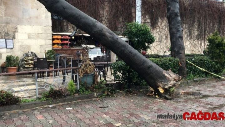 Ağaç cadde üzerinde kafeterya olarak kullanılan 234 senelik tarihi Koca Yusuf Paşa Sebilinin çatısına düştü. Düşme nedeniyle sebilin çatısı zarar gördü. Kafeterya sahiplerinin ihbarı üzerine olay yerine itfaiye, polis ve zabıta ekipleri sevk edildi. Kısa sürede olay yerine gelen itfaiye ekipleri güvenlik şeridi çekerek çevrede önlem aldı. Ardından sebilin çatısına çıkan ekipler elektrikli testere ile ağacı kesmeye başladı. Olayı gören vatandaşlar ise cep telefonlarıyla görüntüledi.