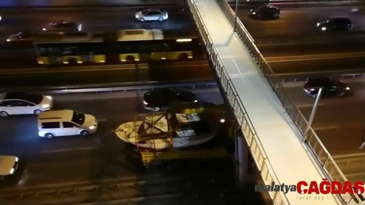 Olay, dün saat 22.00 sıralarında E-5 Karayolu Avcılar mevkisinde meydana geldi. Edinilen bilgiye göre, akşam saatlerinde tekne yüklü vinç, karayolunda seyretmeye başladı. Sürücü bir süre sonra bu şekilde bir üst geçidin altından geçmeye çalıştı. Ancak yüksekliği hesap edemeyen sürücüsü üst geçide çarptı.
