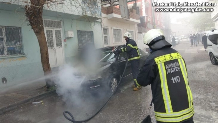 Adıyaman'da, park halinde olduğu esnada alev alarak yanan otomobili itfaiye ekipleri söndürdü.