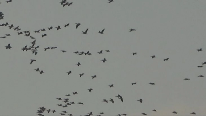 Pelikanlar ve turnaların gökyüzündeki dansı görsel şölen oluşturdu