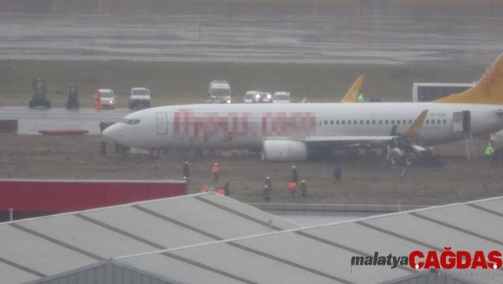 Sabiha Gökçen Havalimanı'na iniş yapan bir yolcu uçağı, şiddetli fırtına nedeniyle pistten çıktı. Yağmur nedeniyle çamura dönen toprak alanda kalan uçağı kurtarma çalışmaları görüntülendi.