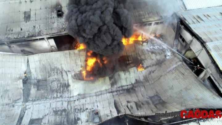 Öte yandan, fabrikayı saran alevlerde havadan görüntülendi.
