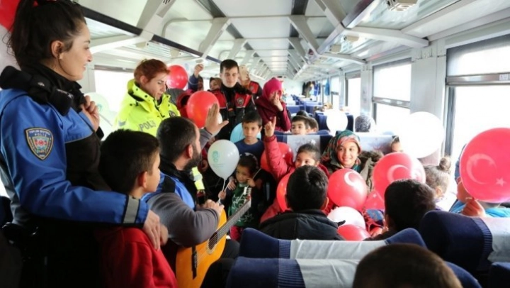 Elazığ polisi, depremin ardından aileleri ile birlikte vagonlarda yaşamaya başlayan çocuklar için bir etkinlik düzenledi.