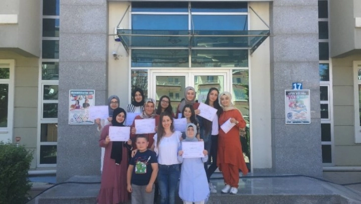 Pursaklar Belediyesi Hüma Sultan Hanım Evi'nde pastacılık ve işaret dili kurslarına katılan kadınlar sertifikalarını aldı.
