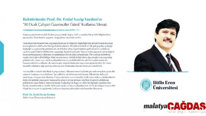 Bitlis Eren Üniversitesi (BEÜ) Rektörü Prof. Dr. Erdal Necip Yardım, '10 Ocak Çalışan Gazeteciler Günü' nedeniyle bir kutlama mesajı yayımladı.