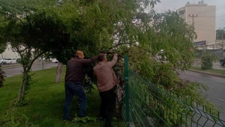 Rüzgar ve şiddetli yağış, ağaçlara zarar verdi