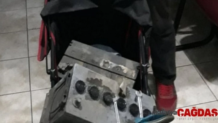 Kayseri'de, sabah saat 04.00'da bebek arabası ile dolaşan kişiden şüphelenen polis ekipleri, kontrol ettiği bebek arabasında çalıntı akü ele geçirdi.