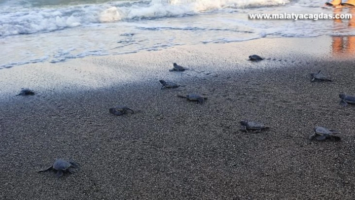 Hatay'ın Samandağ ilçesi sahillerinde yumurtalarından çıkan yavru yeşil deniz kaplumbağalarının denize ulaşma serüvenleri devam ediyor.