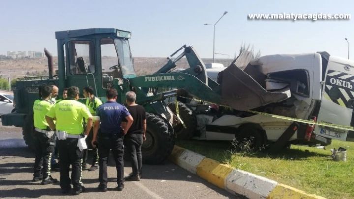 Şanlıurfa'da freni boşalan iş makinesi, öğrenci servis minibüsünü biçti. Çok sayıda yaralının olduğu bölgeye ambulanslar sevk edildi.