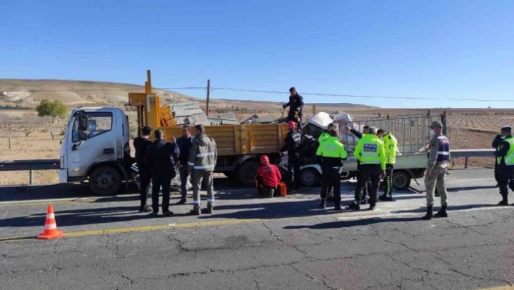 Şanlıurfa'da devrilen hafif ticari aracın sürücüsüne yardım etmek isteyen kamyona başka bir araç çarptı. Kazada her üç aracın sürücüsü de yaralanırken, sıkışan sürücülerden biri itfaiye tarafından çıkartıldı.
