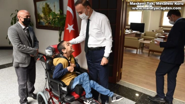 Engellilere verdiği destek ve gösterdiği yakınlıktan dolayı büyük memnuniyet duyan Bilal Yalçın ve Ahmet Güntekin, Vali Erin'e teşekkür ettiler.