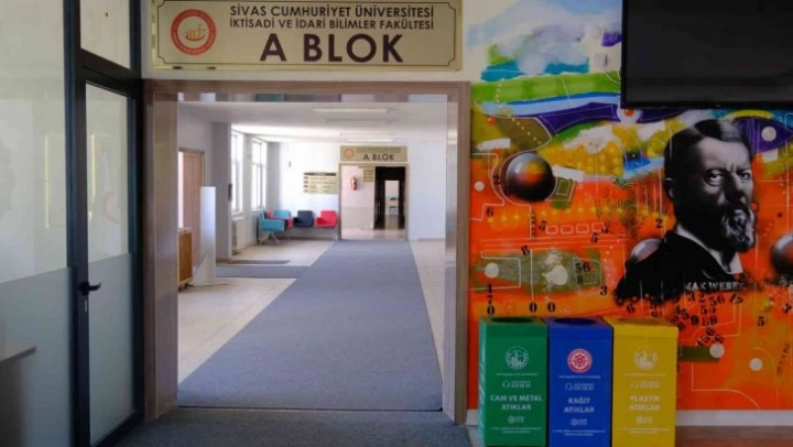 Sivas Cumhuriyet Üniversitesi geri dönüşümde farkındalık oluşturmak için kampüs ve fakülte binalarına geri dönüşüm kutuları yerleştirdi.