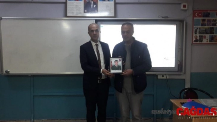Bir süre şehit babası ile sohbet eden öğrenciler, daha sonra şehit babası Süleyman Kuşdili'ye, oğlunun hatırasını yaşatmak üzere fotoğraf armağan ettiler.