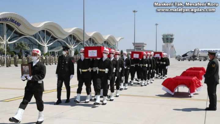 Hatay'ın Kırıkhan ilçesinde askeri tırın çırçır fabrikasının duvarına çarpması sonucu şehit olan ulaştırma uzman çavuşlar Necati Yatkak ve Halit Altun'un ve dün Suriye'nin Afrin bölgesinde şehit düşen Piyade Uzman Çavuş Şahin Sarılmaz'ın cenazeleri, Hatay'da düzenlenen törenin ardından memleketleri Mardin, Nevşehir ve Afyonkarahisar'a uğurlandı.