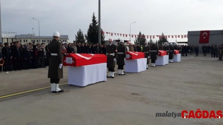 Suriye'nin Resulayn kentinin güneyinde yol kontrolü yaparken PKK/YPG'li teröristlerin bomba yüklü araçla düzenlediği saldırıda şehit olan 4 asker için uğurlama töreni düzenleniyor.