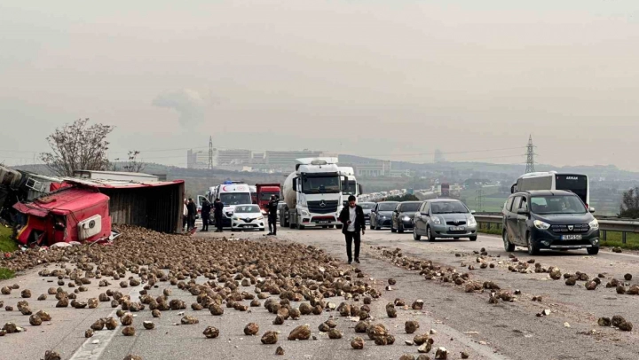 Kaza, saat 11.30 sıralarında İstanbul-İzmir Otobanı, Hal Kavşağı mevkiinde meydana geldi. Edinilen bilgiye göre, şeker pancarı yüklü tır, sürücüsünün kontrolünden çıkıp önce hafif ticari araca, sonra kamyonete çarptı. Savrulan araçlar refüje girerken, tır yola devrildi. Kazayı gören çevredekiler yaralıların yardımına koşarken, 112 ekiplerine bilgi verildi. İhbar üzerine olay yerine çok sayıda polis ve sağlık ekibi sevk edildi. Sağlık ekiplerince ilk müdahalesi olay yerinde yapılan 1'i ağır 5 yaralı ambulansla bölgedeki hastanelere sevk edildi. Şeker pancarlarının yola savrulması nedeniyle, trafik ekipleri bölgede başka kazaların yaşanmaması için tedbir aldı.